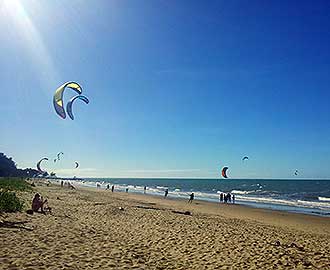 So what makes Yorkeys Knob the best place to kite board in Cairns? Yorkeys Knob is the only kite surfing beach in Cairns that gets the right winds and combines it with shallow waters and a wide beach. It has no direct on shore winds. Its wide beach has no coconut or palm trees on it. It’s the only beach in the Cairns area that gets the trade winds suitable for kite surfing, from April to October.